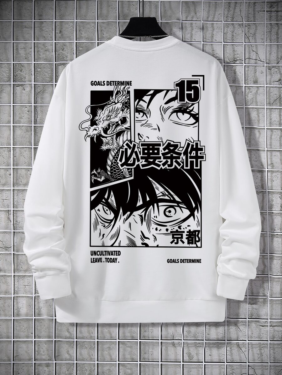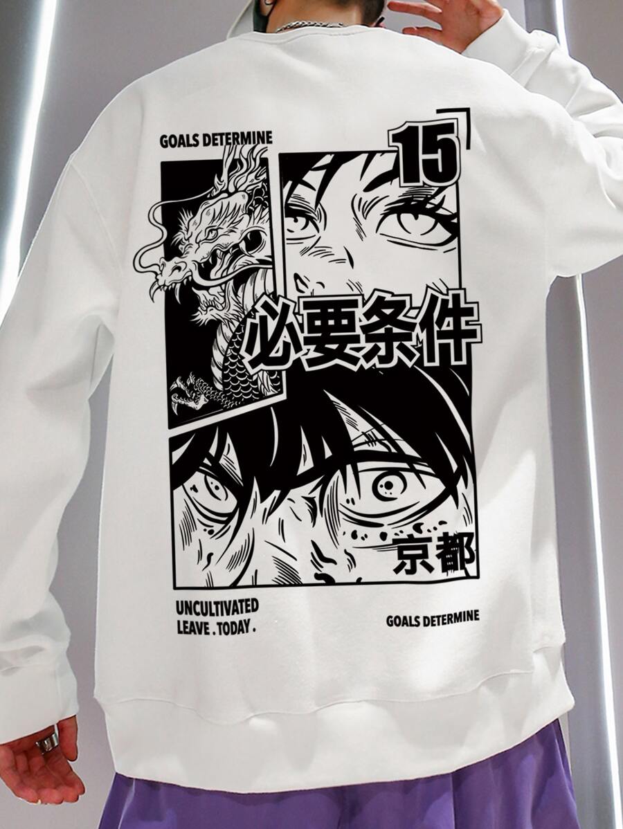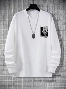 Männer Pullover mit Buchstabe & Cartoon Grafik, Drop Shoulder