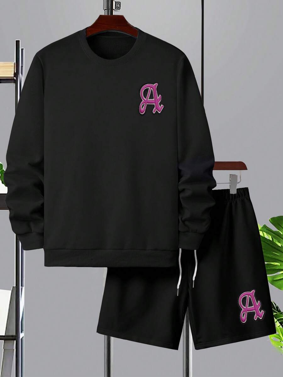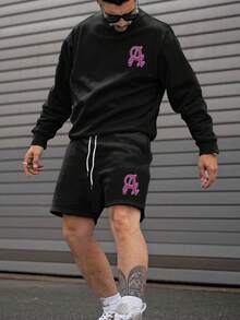 Männer Buchstaben Stickerei, Sweatshirt mit & Tunnelzug, Shorts mit