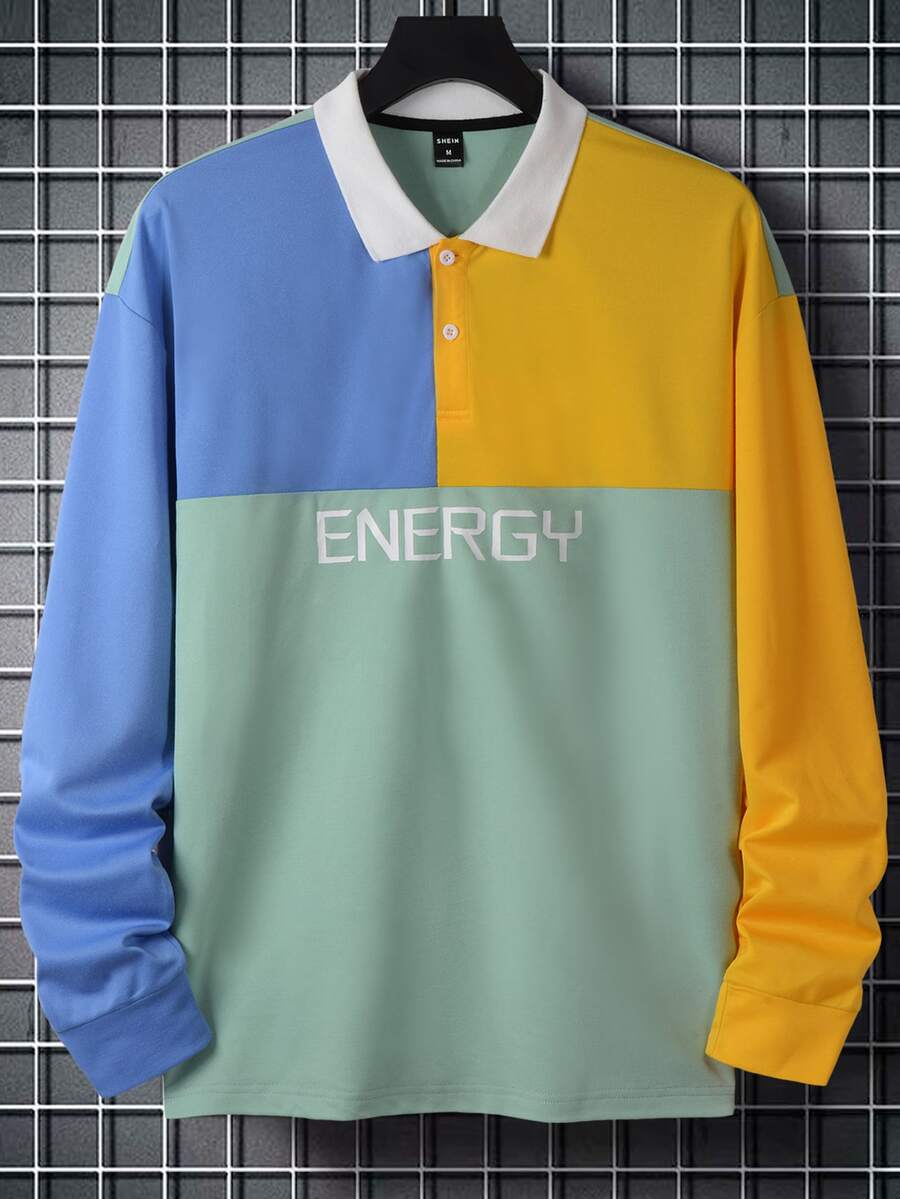 Männer Polo Shirt mit Buchstaben Grafik, Farbblock