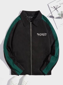 Männer Jacke mit Buchstaben Grafik, Kontrast Besatz, Kapuze