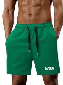 Herren Locker Sitzende Shorts Mit Buchstaben Druck Und Kordelzug Taille