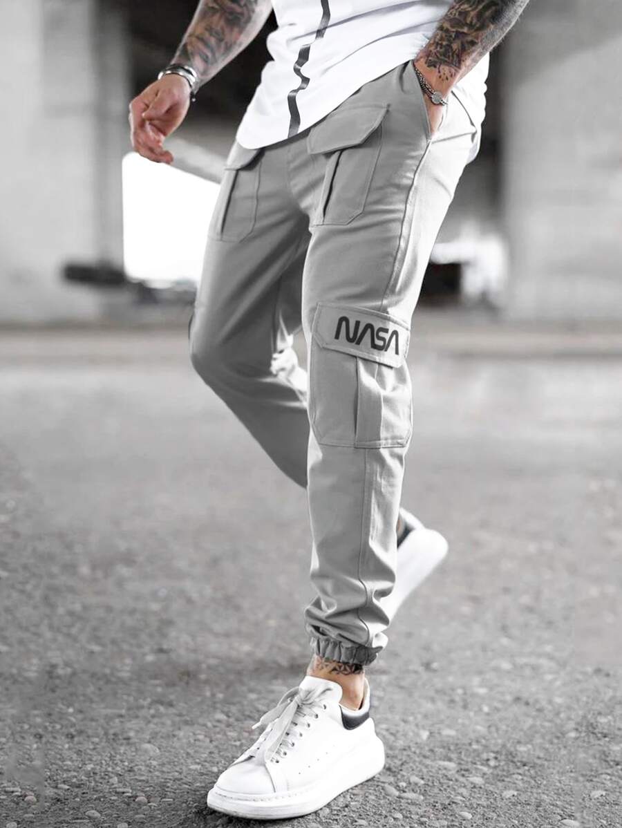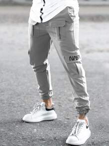 Männer Loose-fit Cargo Hose Mit Buchstaben Grafiken Und Klapptaschen