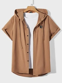 Männer Shirt mit Buchstabe Flicken Detail Tunnelzug, Kapuze, ohne T-Shirt
