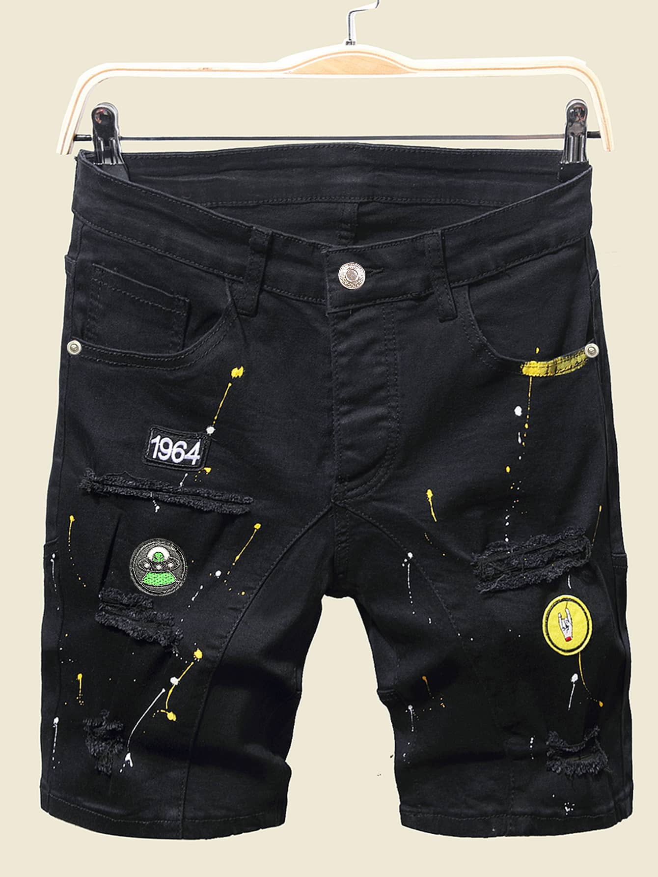 Männer Denim Shorts mit Flicken Detail, Riss