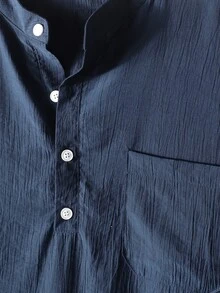 Männer Shirt mit Flicken, Tasche, halber Knopfleiste