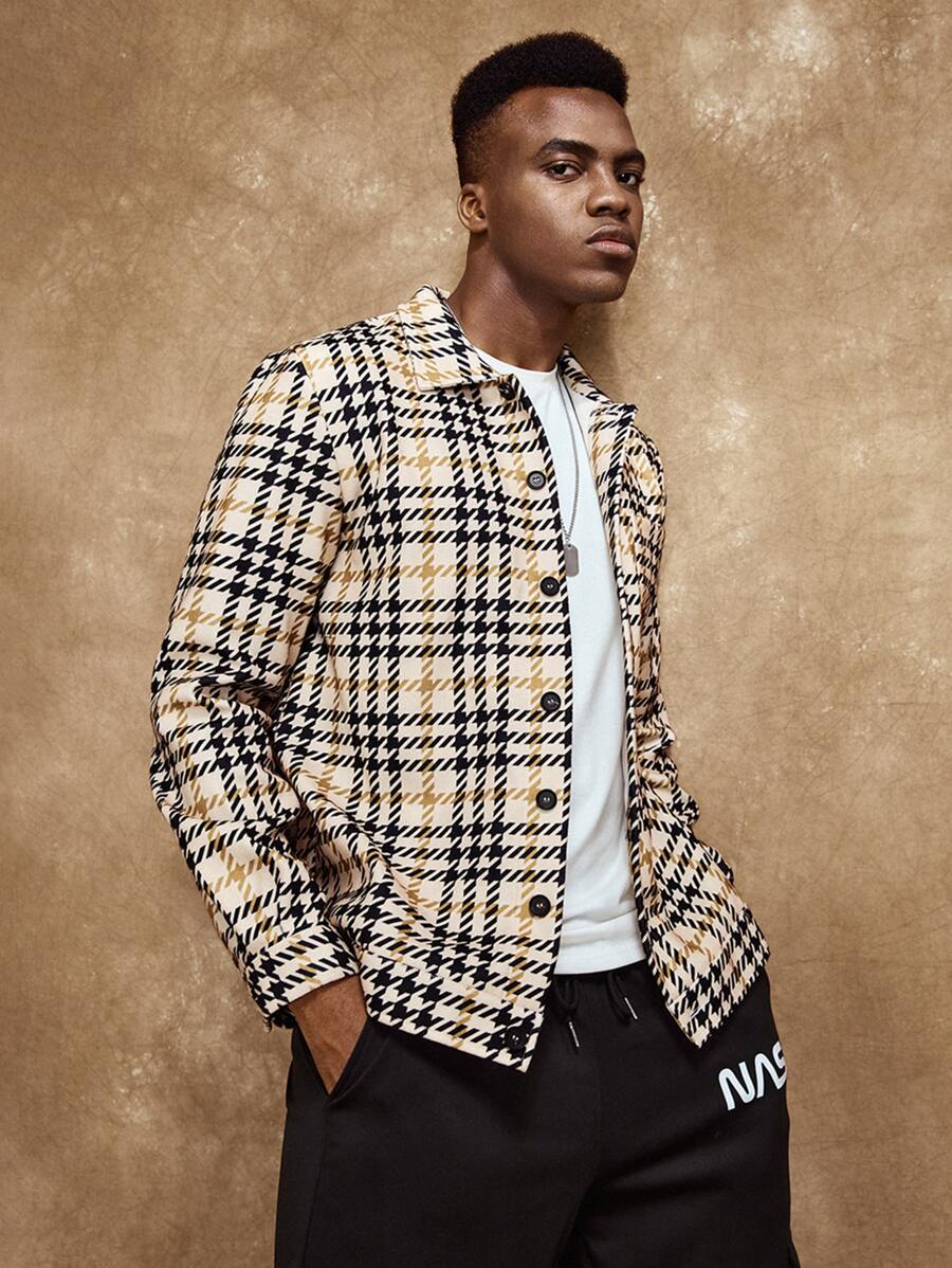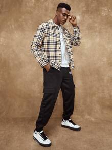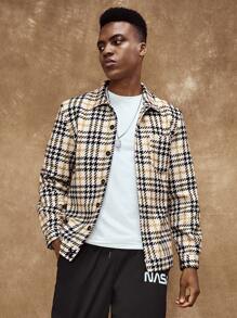 Männer Mantel mit Plaid Muster, Knopf vorne, Tasche
