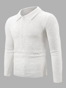 Männer Cardigan mit Pointelle Strick Knopf vorne
