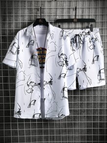 Männer zufälliger Grafik Muster Shirt & Shorts ohne T-Shirt