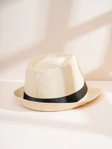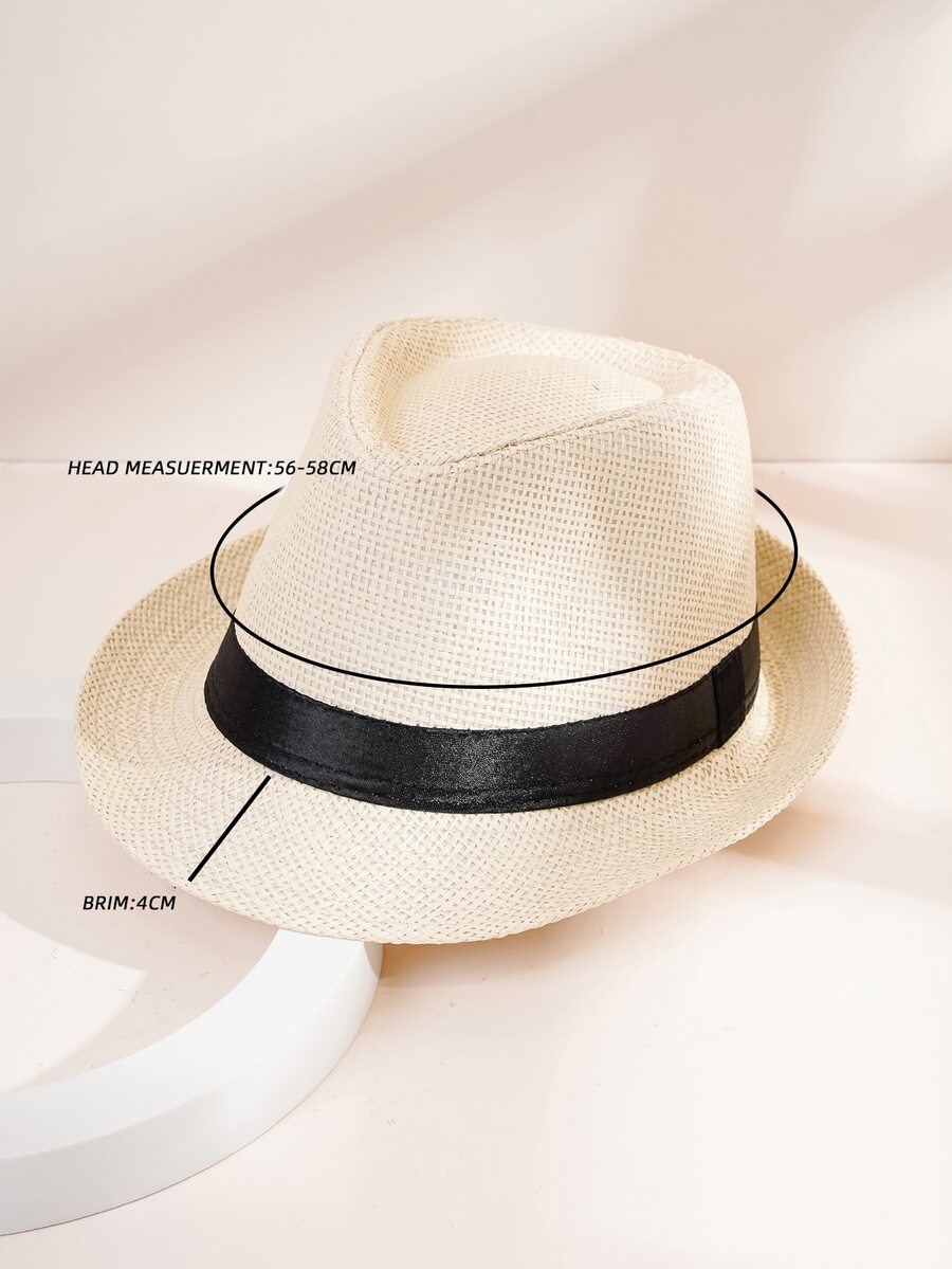 1 Stück Herren Stroh Farbe Einfarbig Fedora Hut, atmungsaktiv Sonnenschutz Hut für Im mittleren Alter und Alten