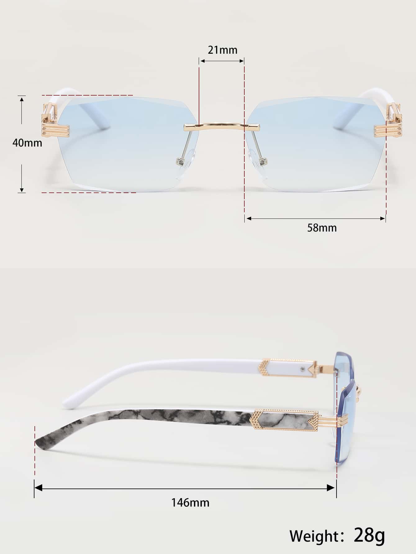 Männer Mode Brille mit Randlos Farbverlauf Linsen