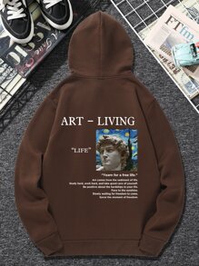 Männer Hoodie mit Skulptur & Buchstaben Grafik, Thermal Futter,