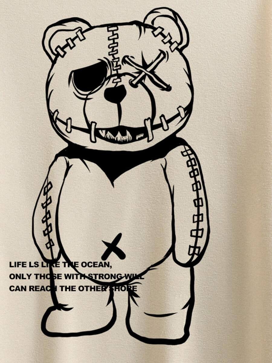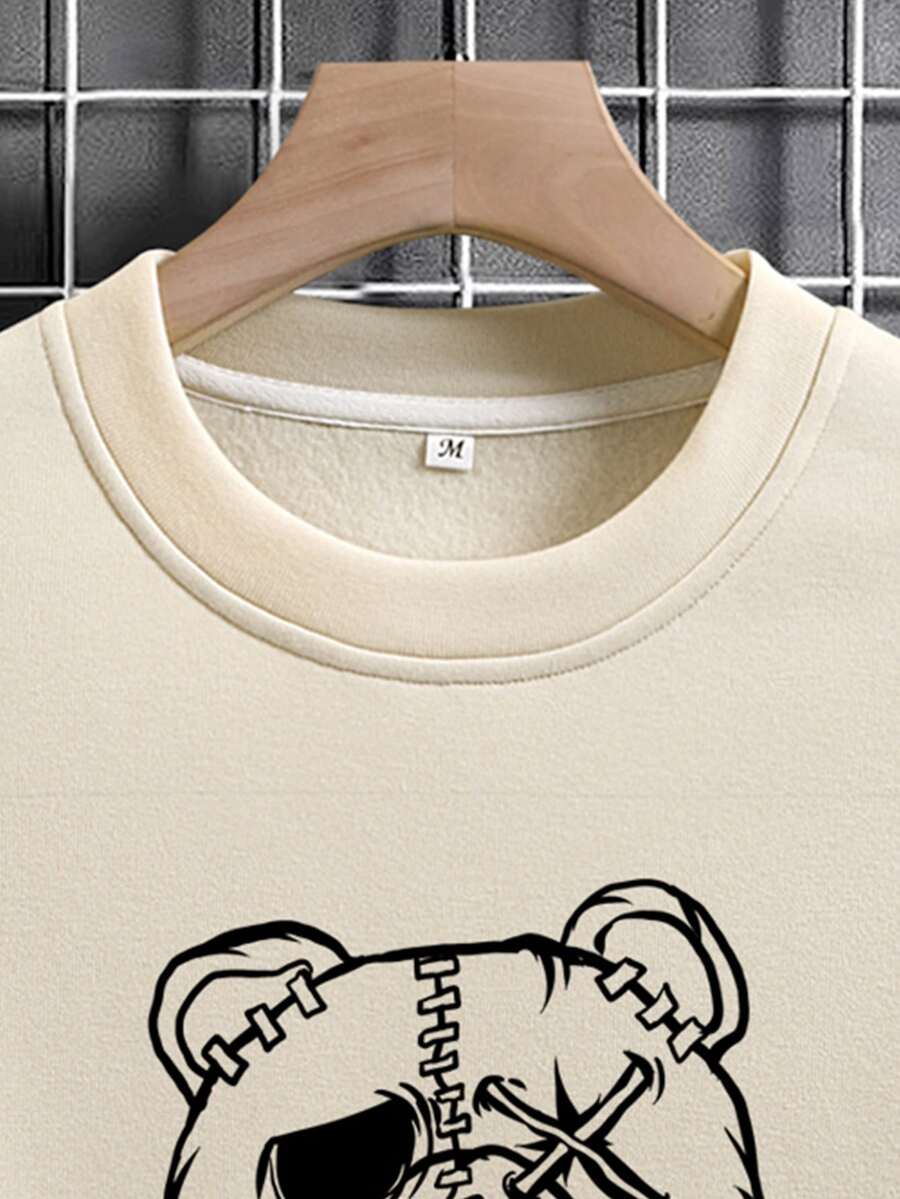 Männer Sweatshirt mit Buchstaben & Bär Muster, Thermal Futter