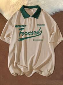 Herren Polo-Shirt mit Slogan-Grafik, Kontrast-Kragen, Drop-Shoulder und oversize-Passform, Geschenkidee für den Freund, zum Ausgehen