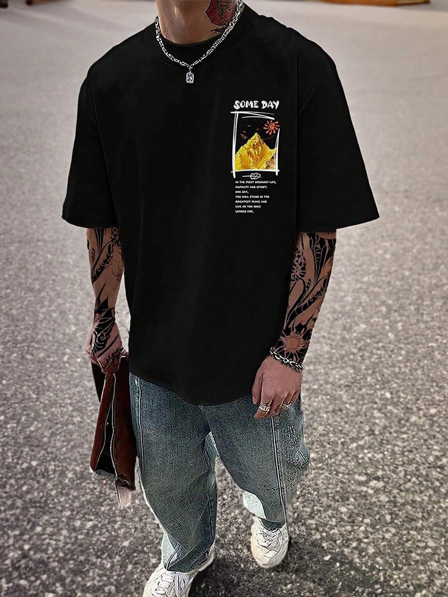 Männer Drop Shoulder T-Shirt mit Buchstaben Grafik,