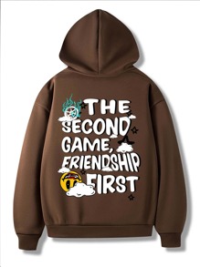 Männer Hoodie mit Buchstaben Grafik, Tasche, Tunnelzug
