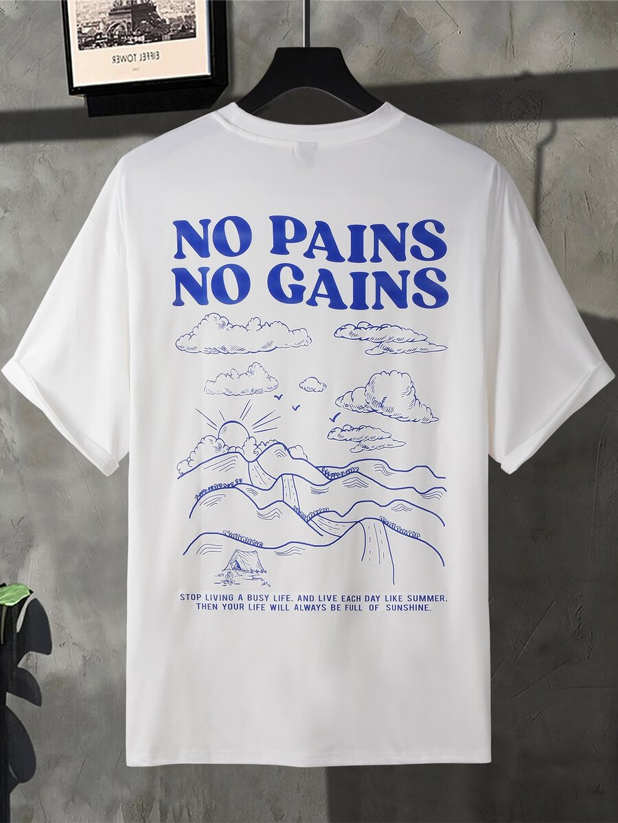 Locker geschnittenes Herren T-Shirt mit Slogan- und Berg-Muster