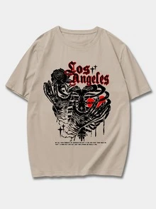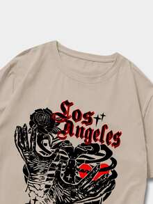 Männer T-Shirt mit Buchstaben Skelett & Blume Grafik