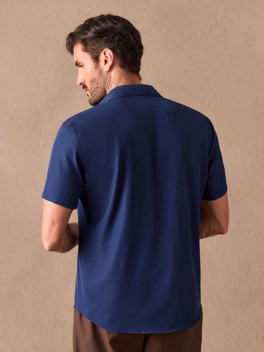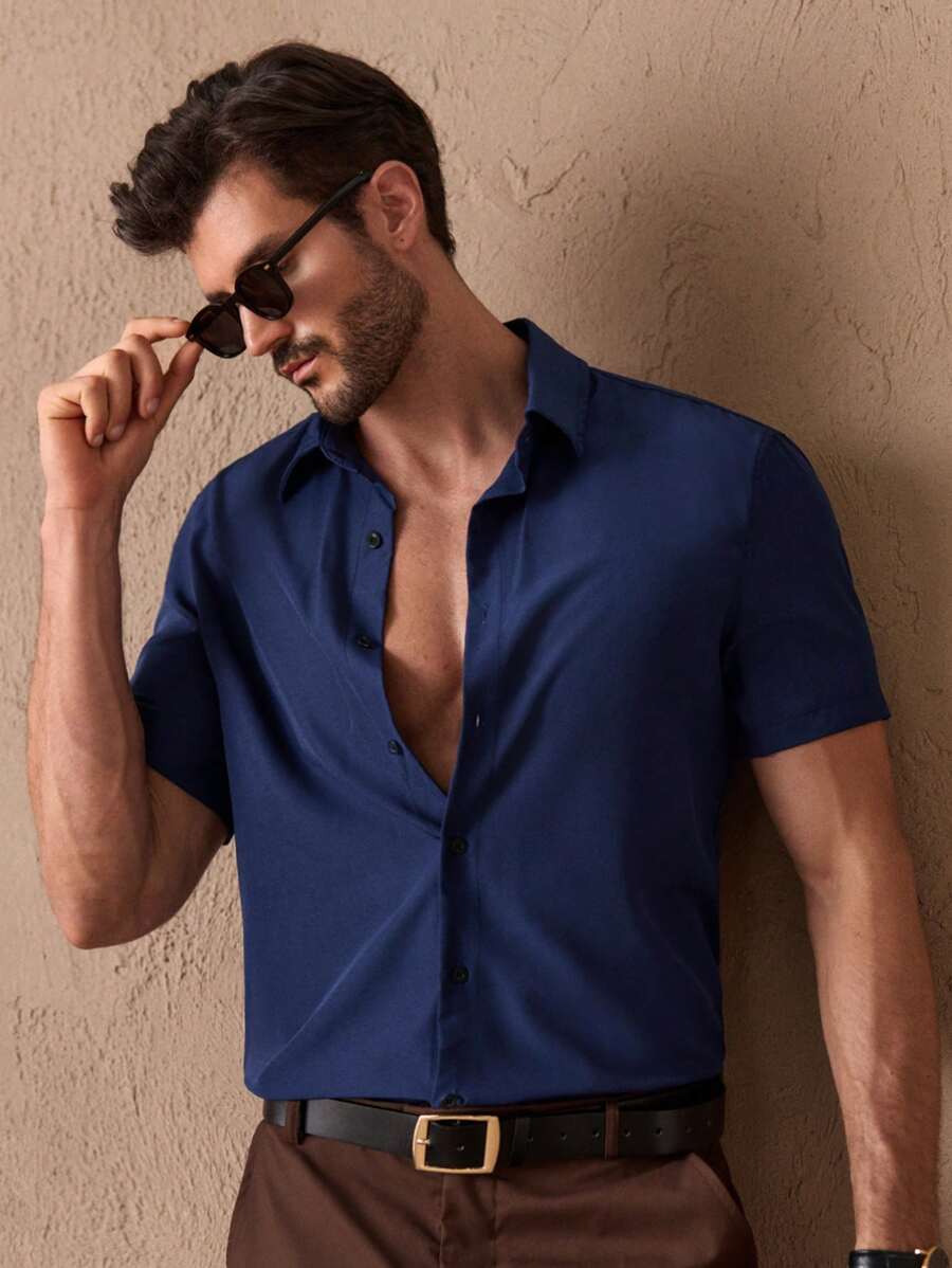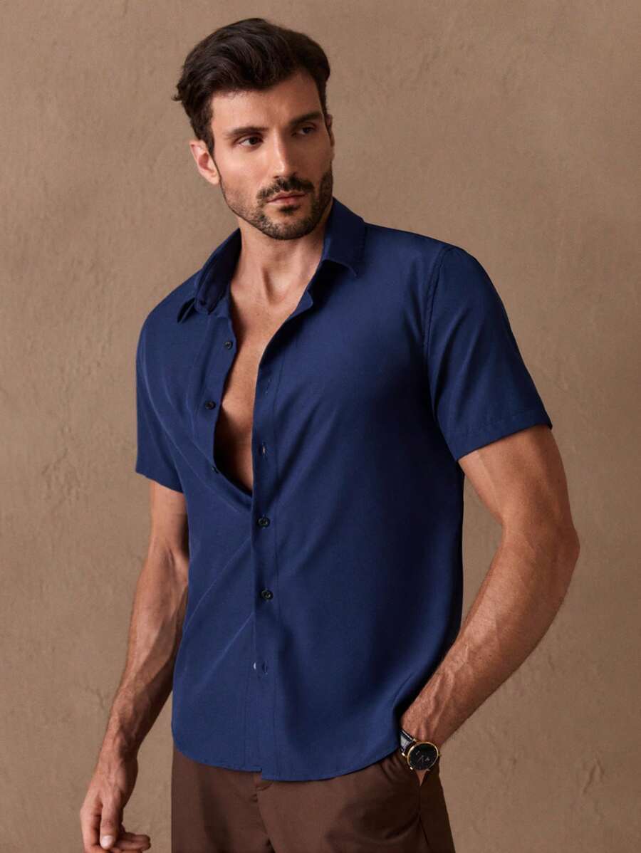 Herren einfarbiges Knopfhemd in Blau ohne T-Shirt