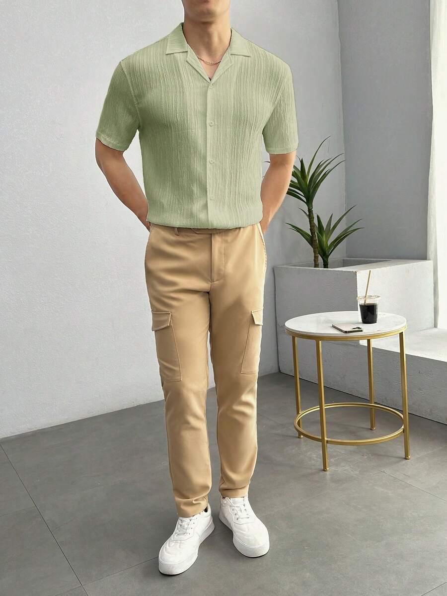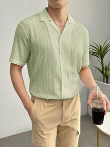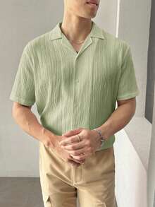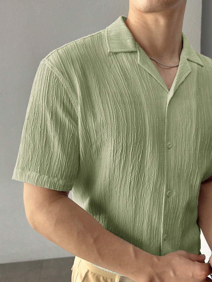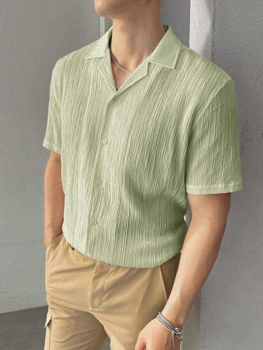 GENTILAND Männer Shirt mit einfarbig Knopf vorne,