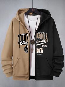 Männer Hoodie mit Buchstaben Grafik, Tunnelzug, Thermal Futter