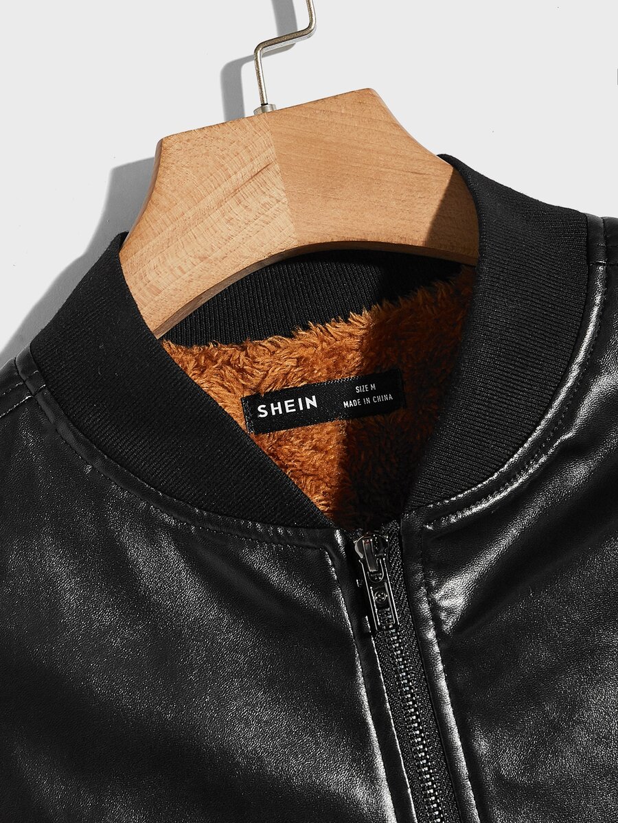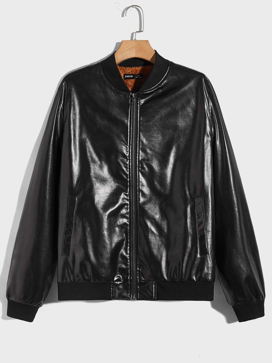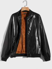 Männer Jacke mit Reißverschluss, Teddy Futter, PU Leder