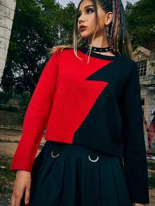 Pullover mit Farbblock und sehr tief angesetzter Schulterpartie