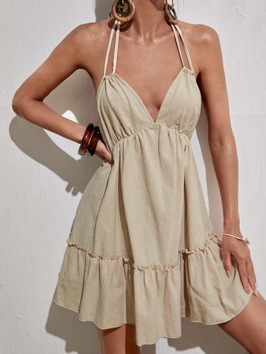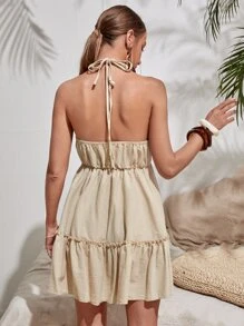 Rückenfreies Kleid mit Neckholder und Rüschen