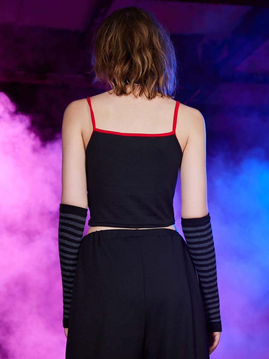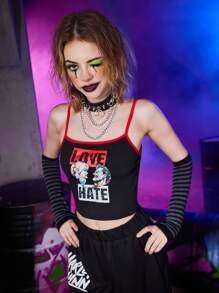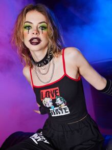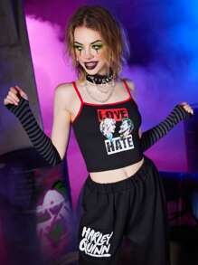 Harley Quinn | ROMWE Crop Cami Buchstabe Figur Grafik, Kontrastsaum