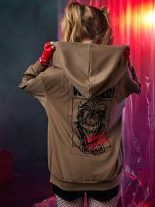 Harley Quinn | ROMWE Kapuzenpullover mit Reißverschluss Buchstaben Grafik