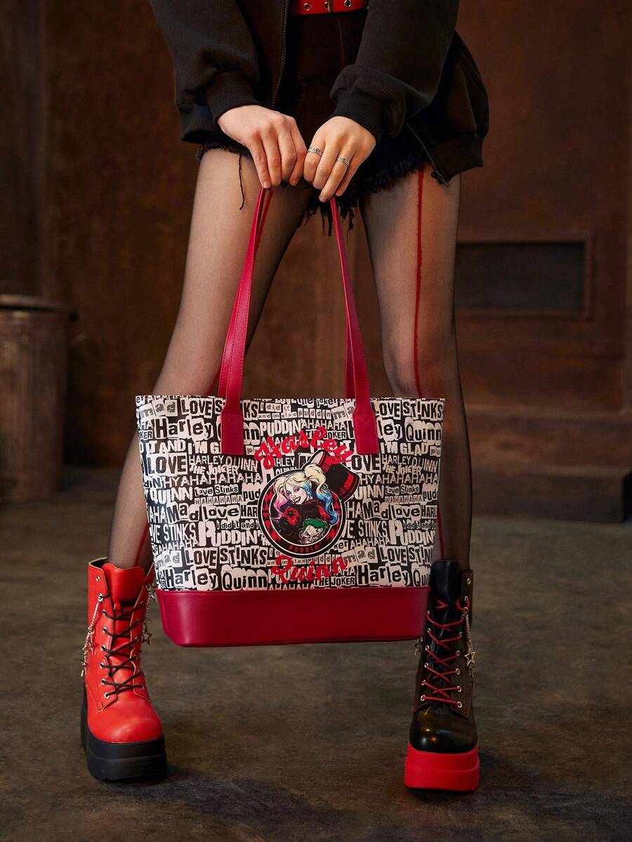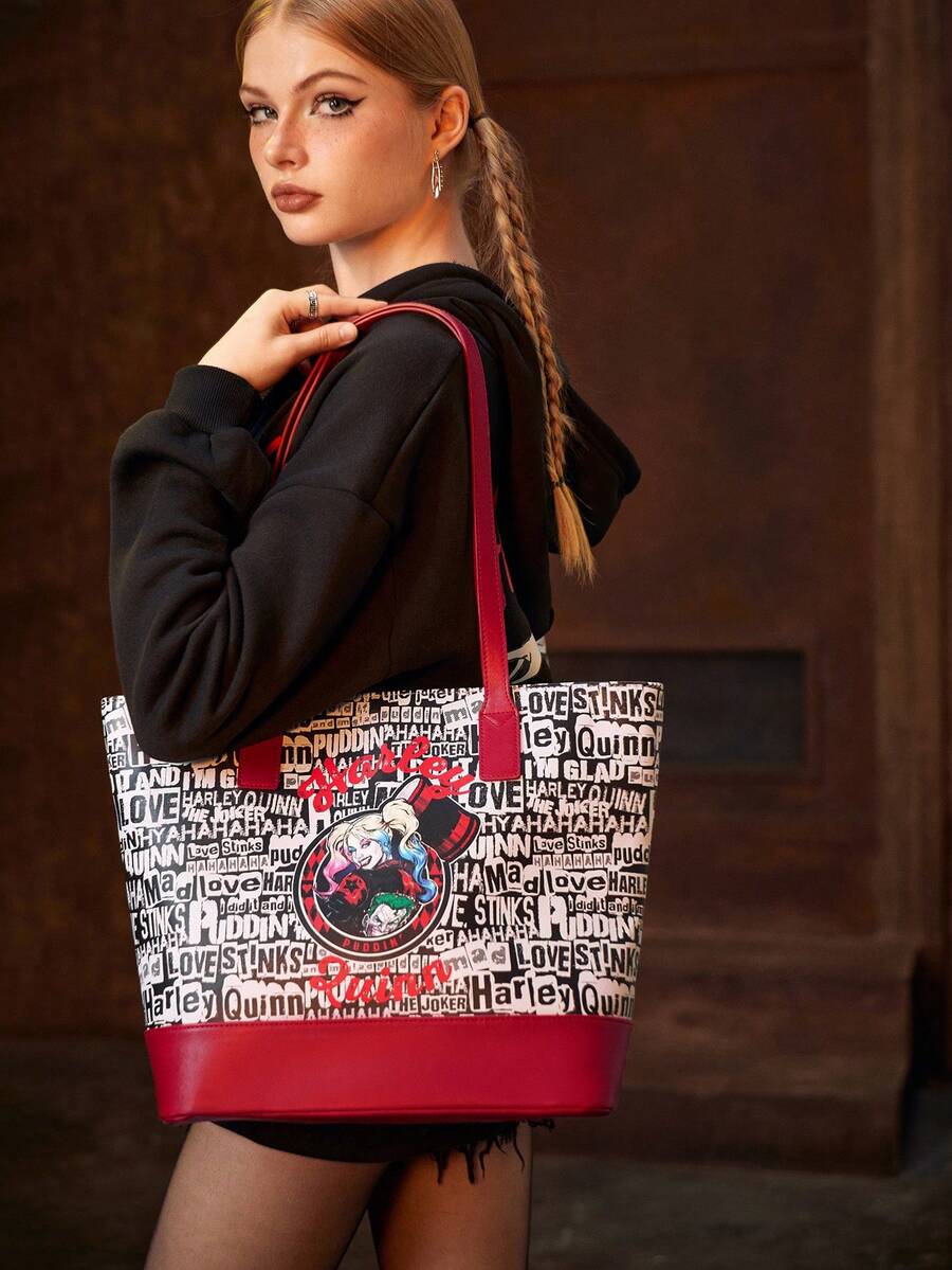 Harley Quinn | ROMWE Große Schulter-Tasche für Damen mit Cartoon-Muster und hoher Kapazität