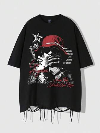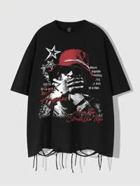 Street Life Herren Anime Mode Dunkel Figur & Buchstaben Grafik Loose Fit Verwaschen T-Shirt