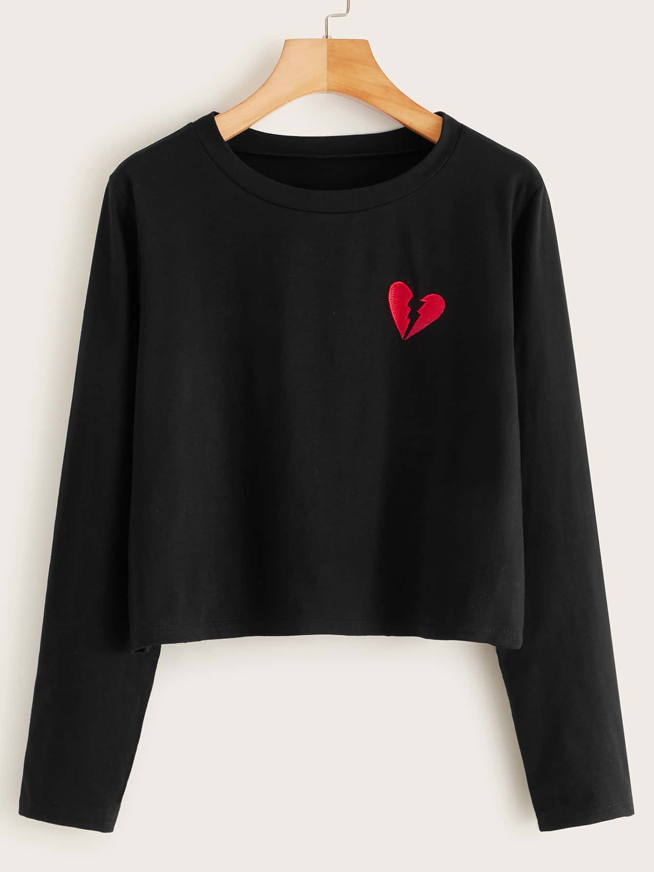 T-Shirt mit Herzen Stickereien und langen Ärmeln