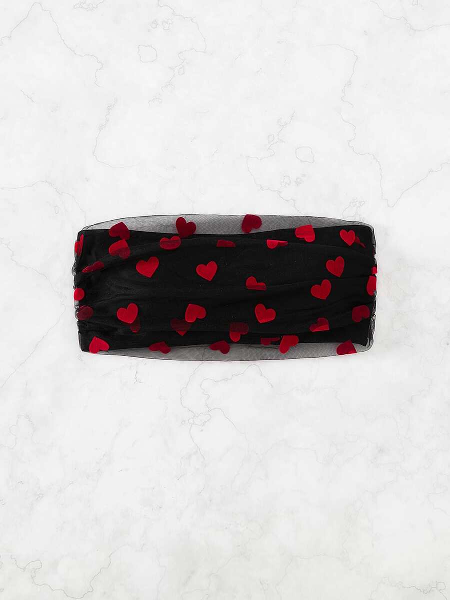 Bandeau Bikini Top mit Herz Muster, Mesh, Rüschen
