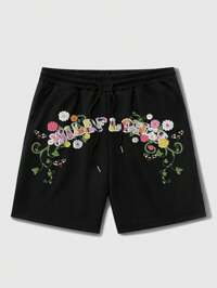 Street Life Herren Grafik Buchstaben Muster Lässig Shorts, geeignet für Frühling & Sommer