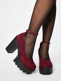 Neue stilvolle vielseitige Burgunder Party-/Büro-/Laufsteg-Plateau-Absatz-Wasserdichte Plateau-High-Heels für Frauen, geeignet für alle Jahreszeiten
