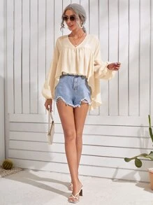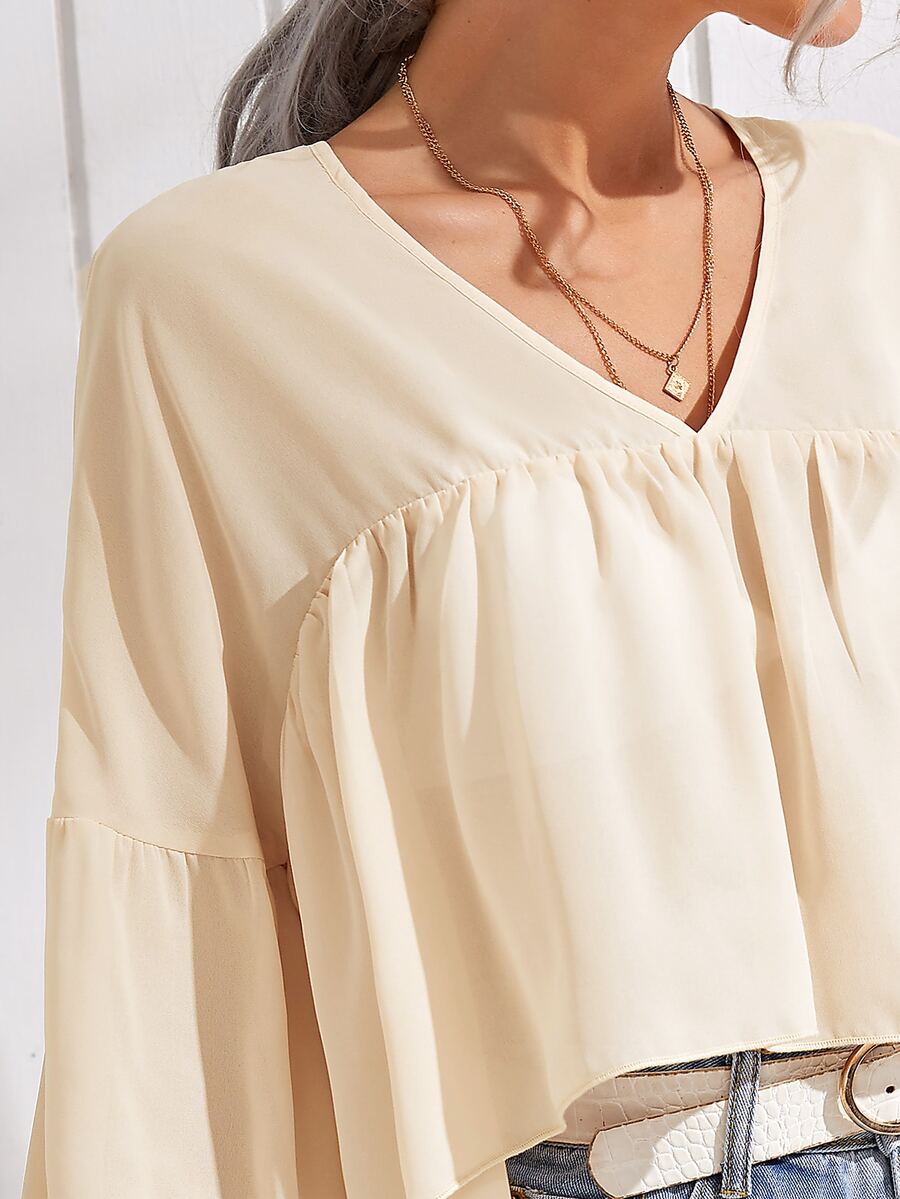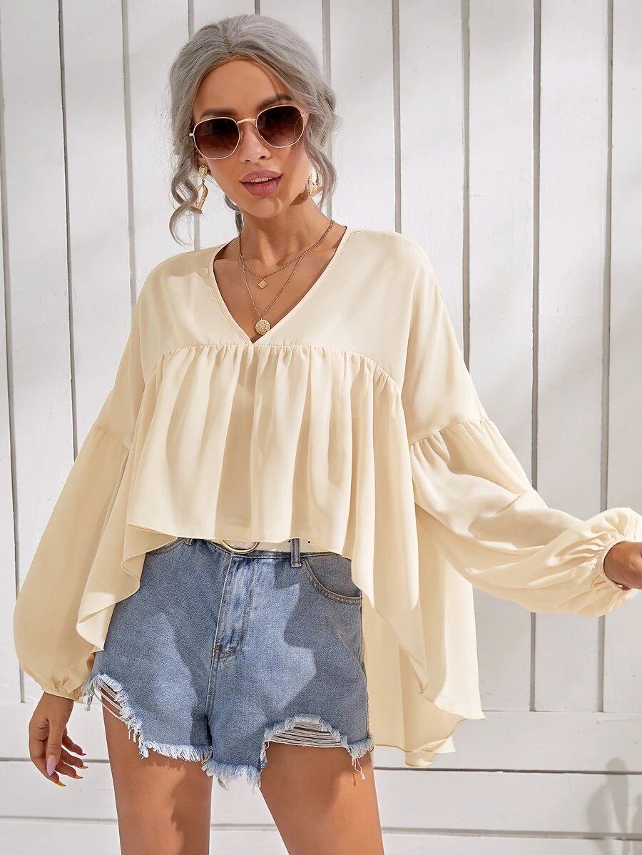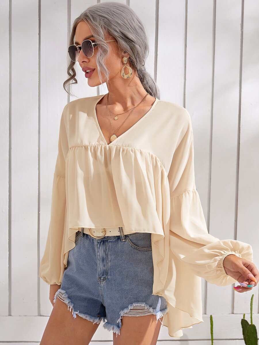 Bluse mit Stufensaum, Bischofärmeln, Rüschen