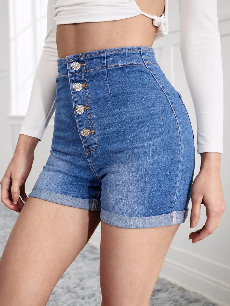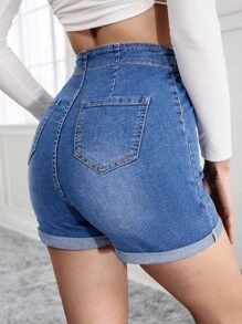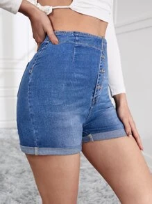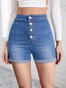Denim Shorts mit hoher Taille, Knopf