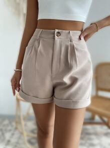 Shorts mit hoher Taille, Falten gerolltem Saum