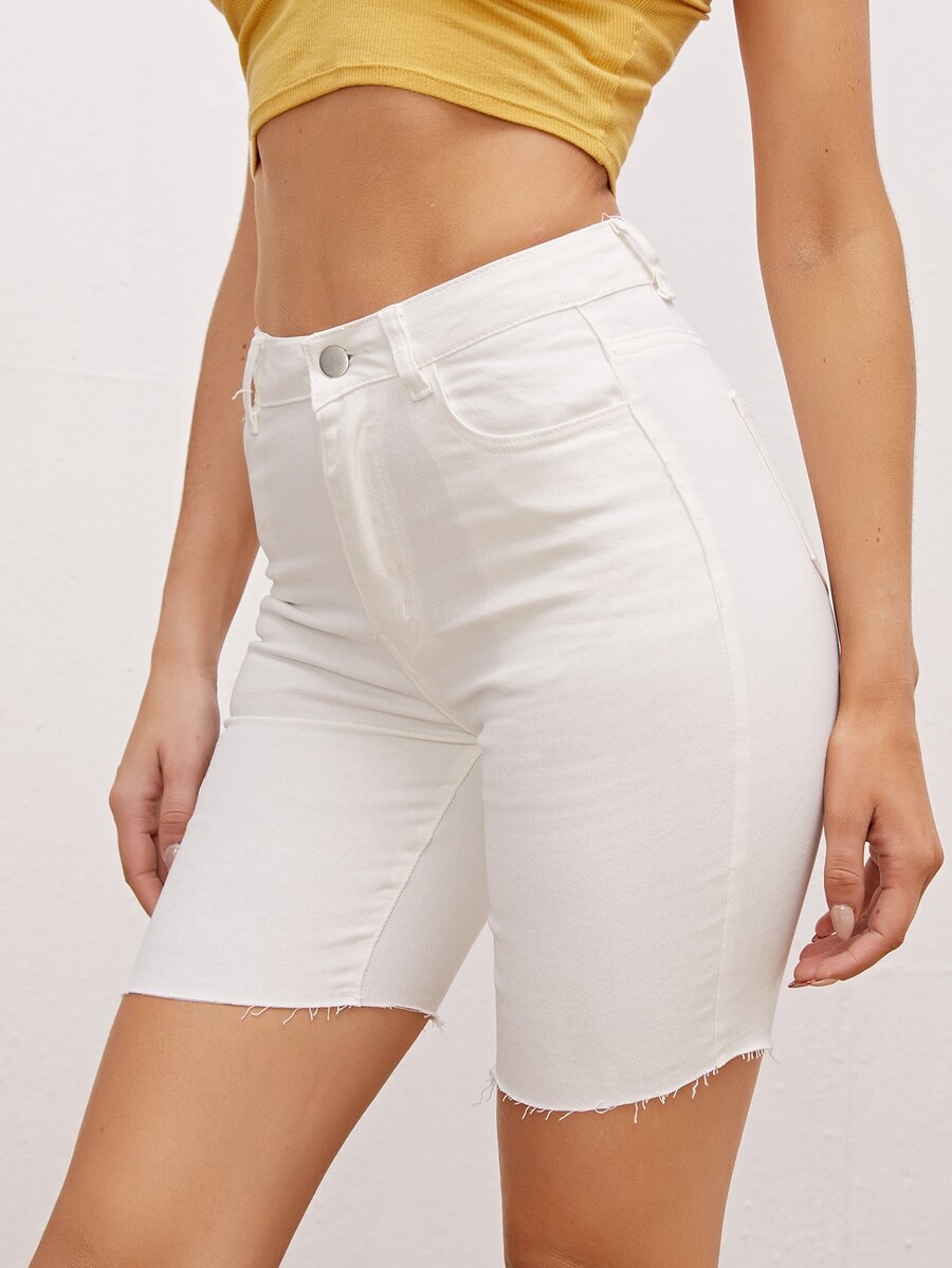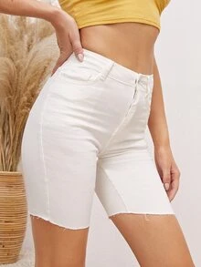 Denim Shorts mit hoher Taille und ungesäumtem Saum