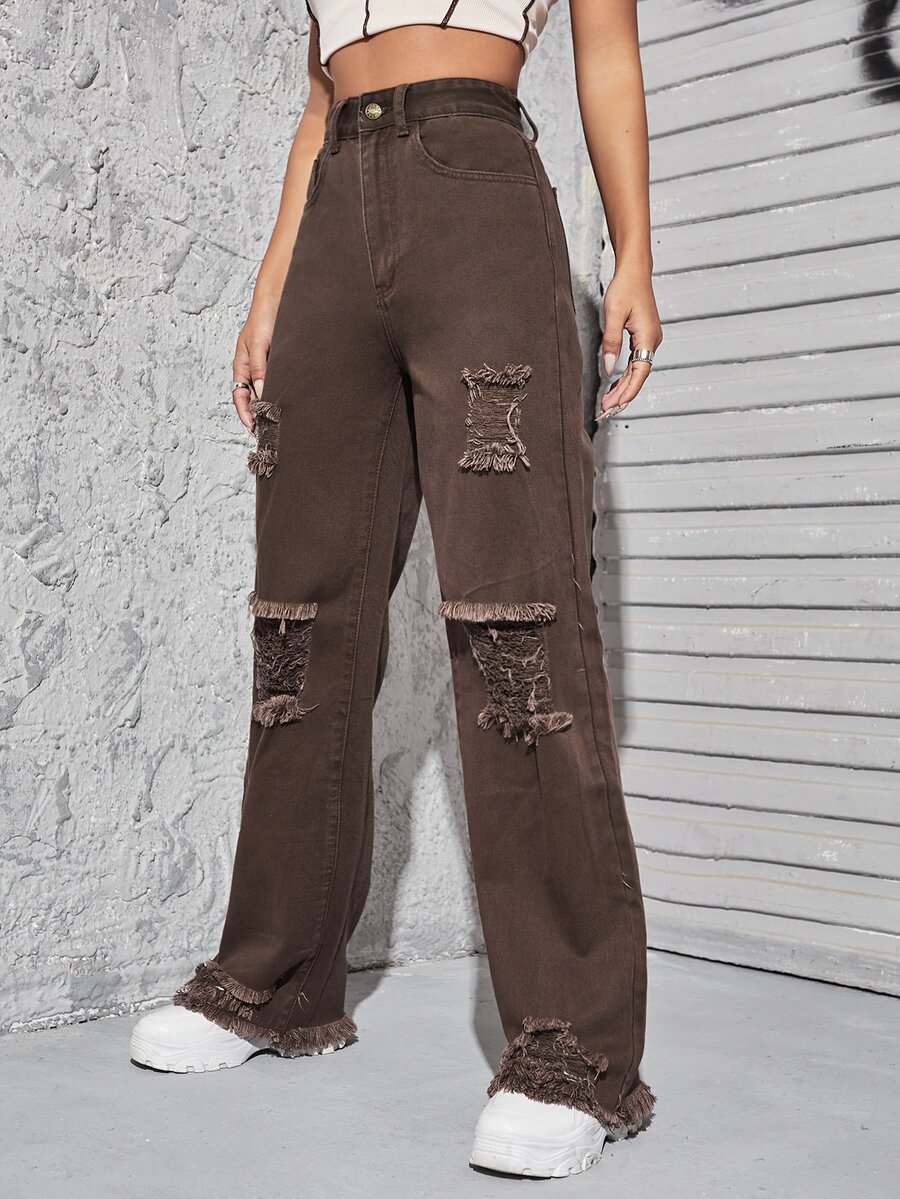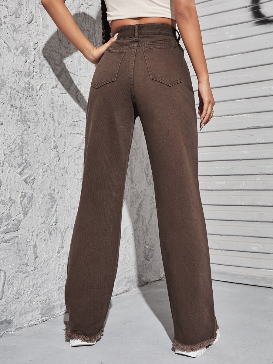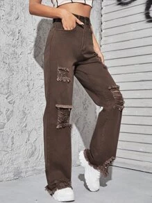Boyfriend Jeans mit hoher Taille, Riss und umgesäumtem Saum