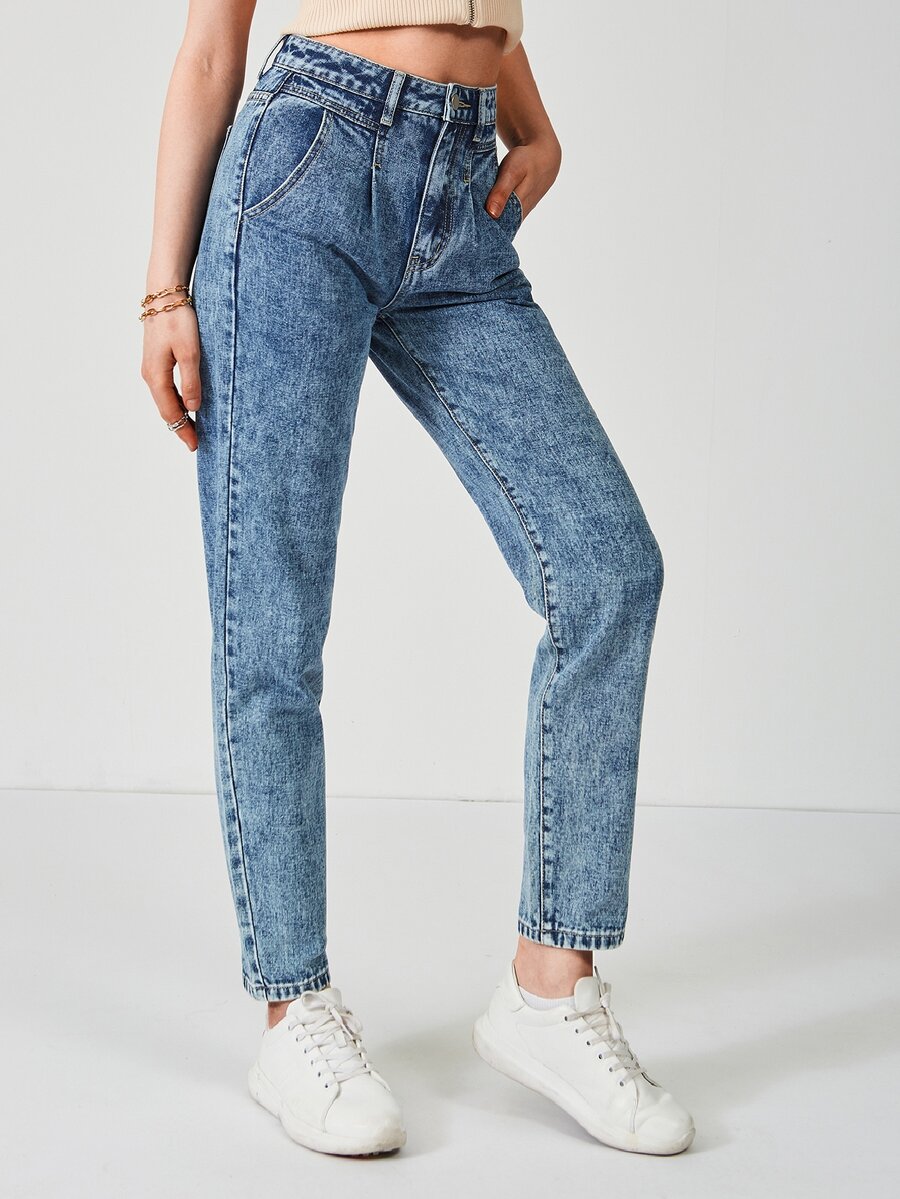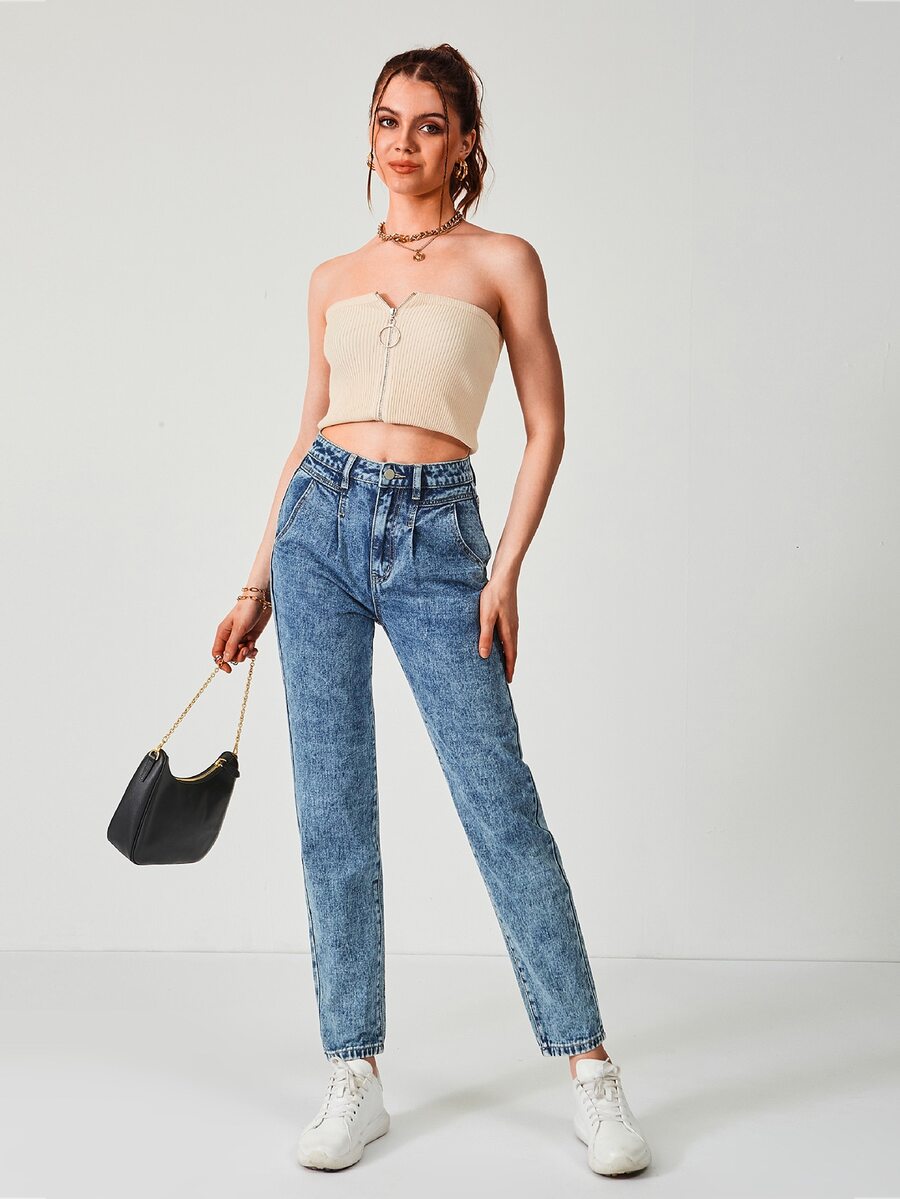 Mom Jeans mit hoher Taille und schrägen Taschen