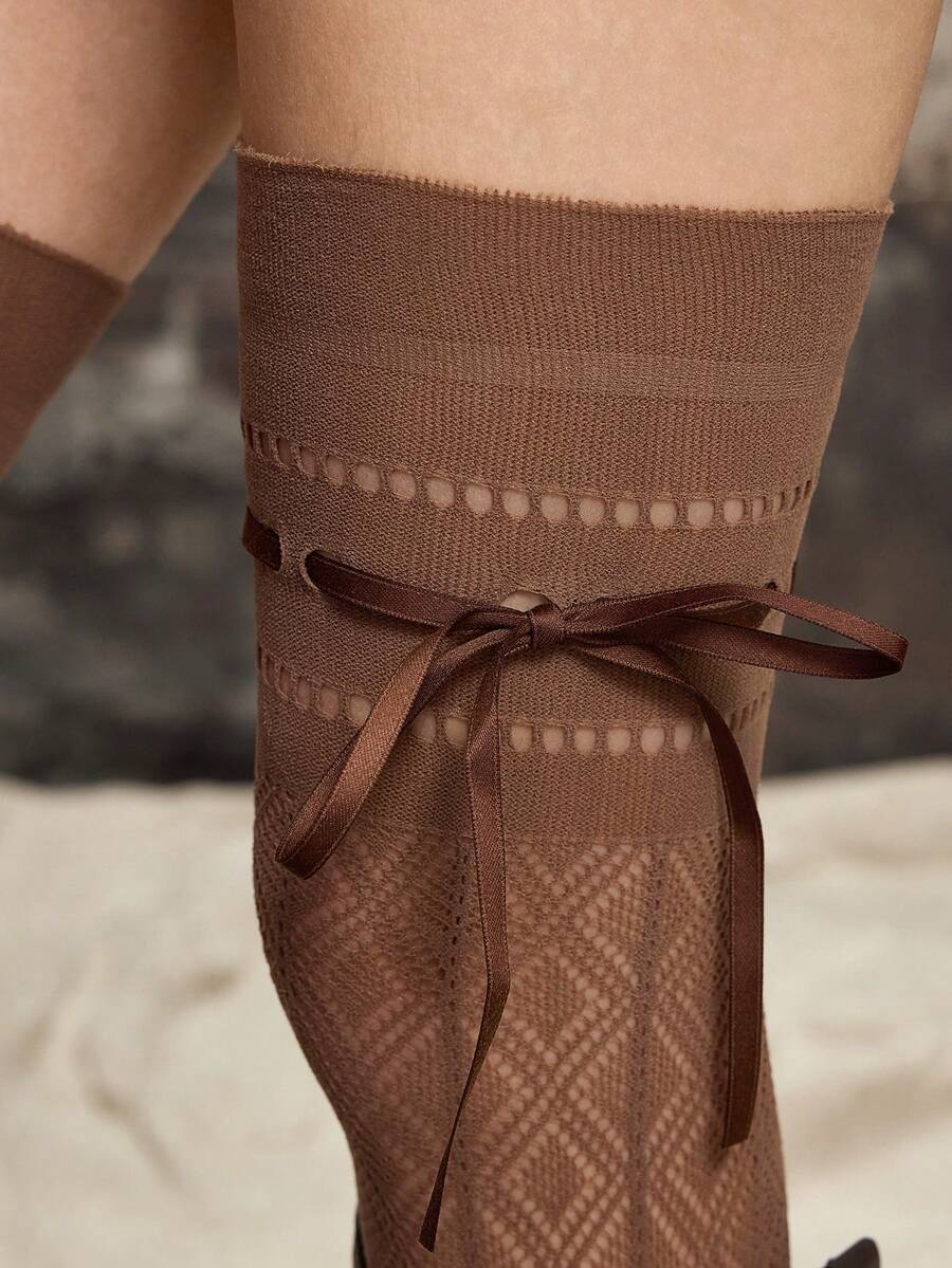 Hippie 1 Paar Damen sexy Spitzen Oberschenkel lange Socken mit Schleifen Dekor, rebellischer Stil