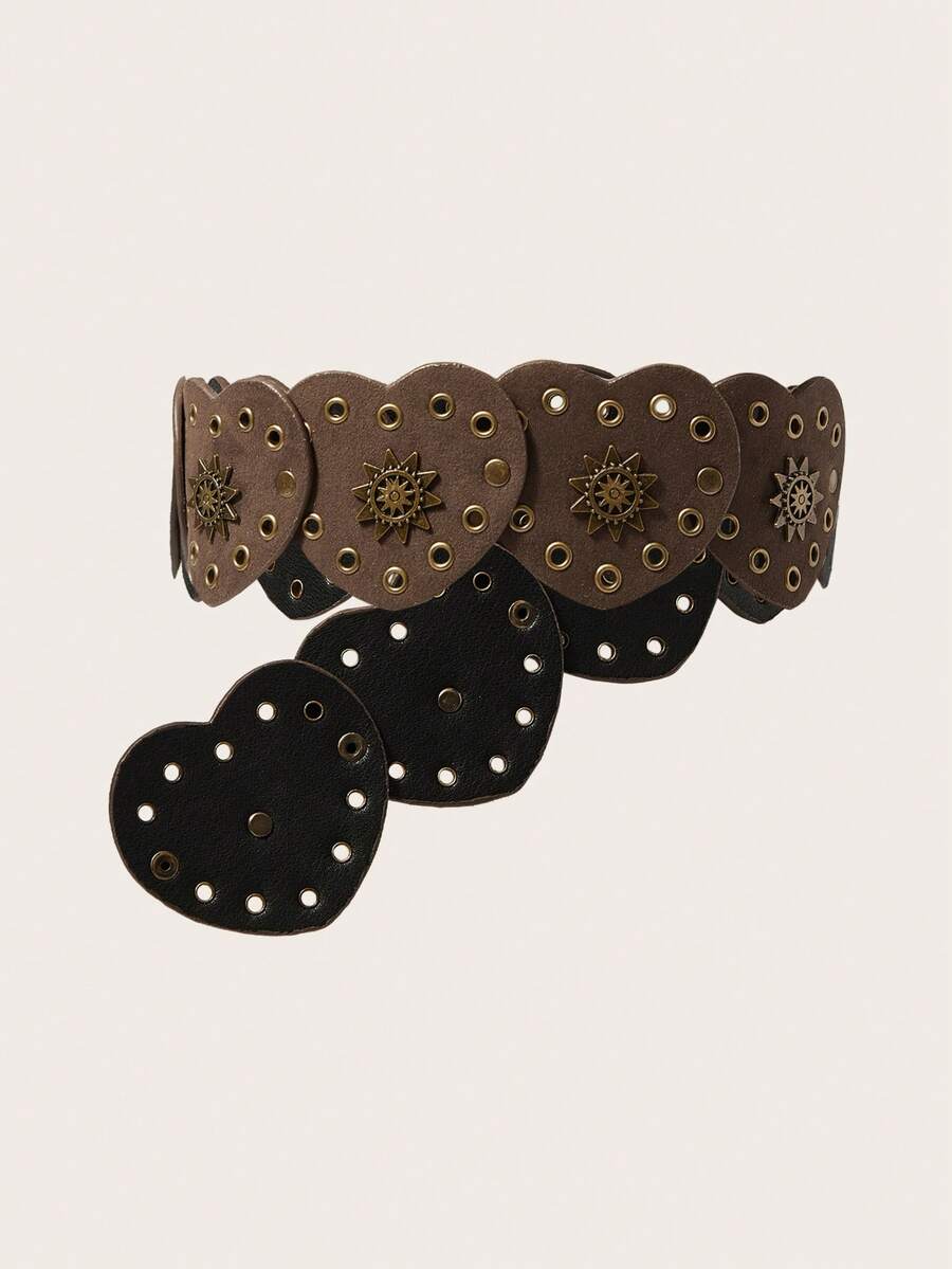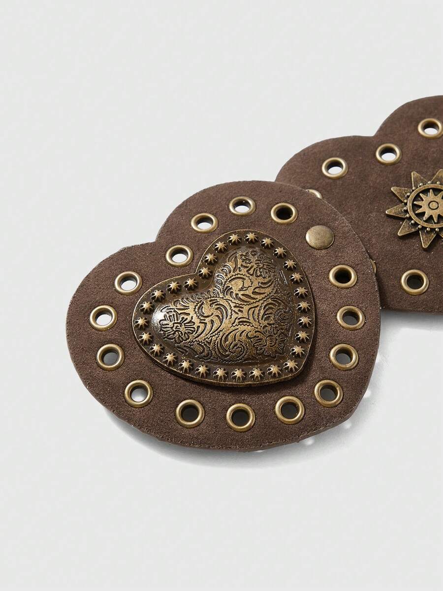 Hippie Breiter Westerngürtel Aus Pu Im Bohemian-stil Mit Herzförmiger Schnalle Und Nieten Für Damen, Vintage-boho