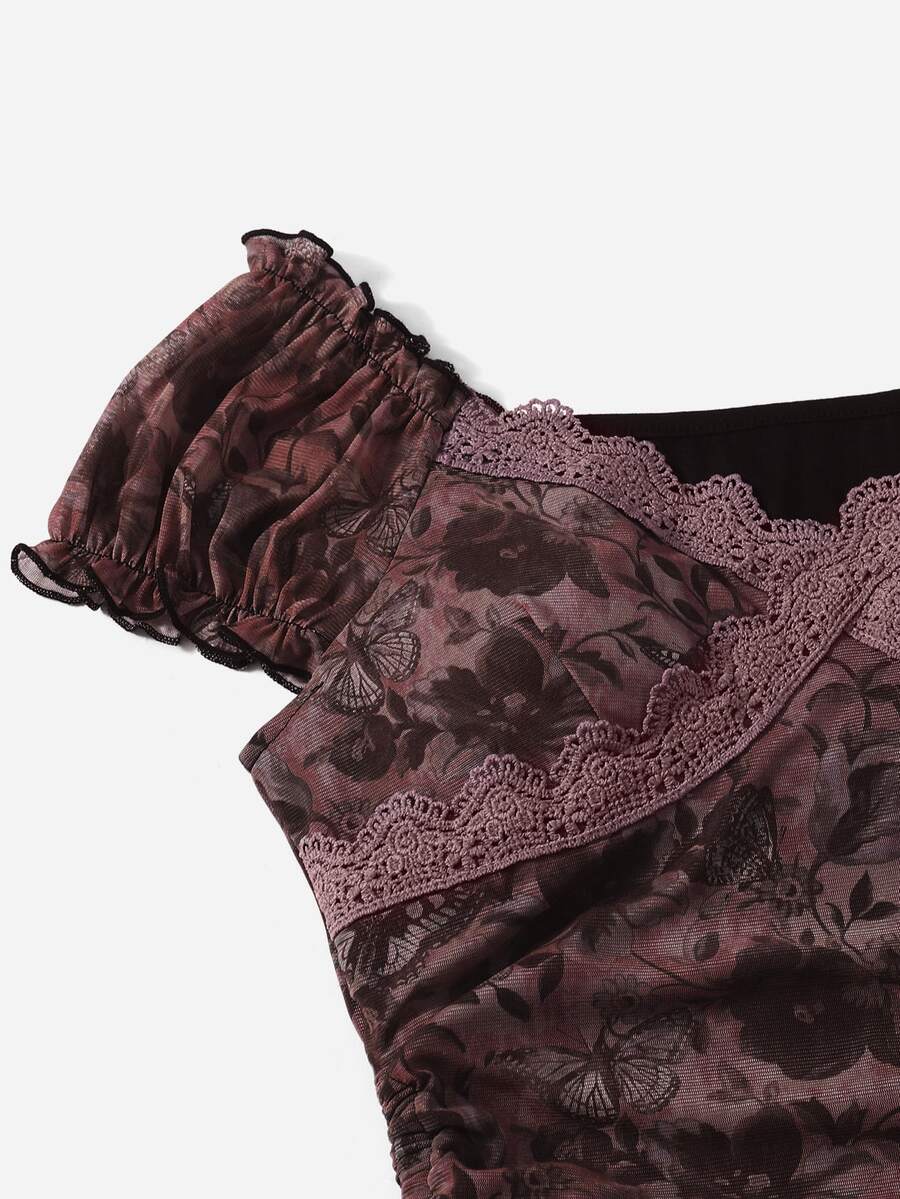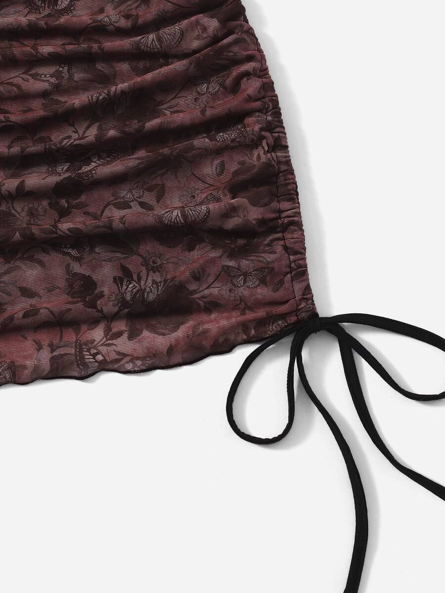 Hippie Kleid mit Schmetterling & Blume Muster, Tunnelzug