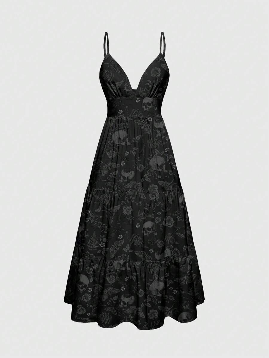 Hippie Mottendruck Beach Goth Skelett Mottenmuster Kleid für Frauen