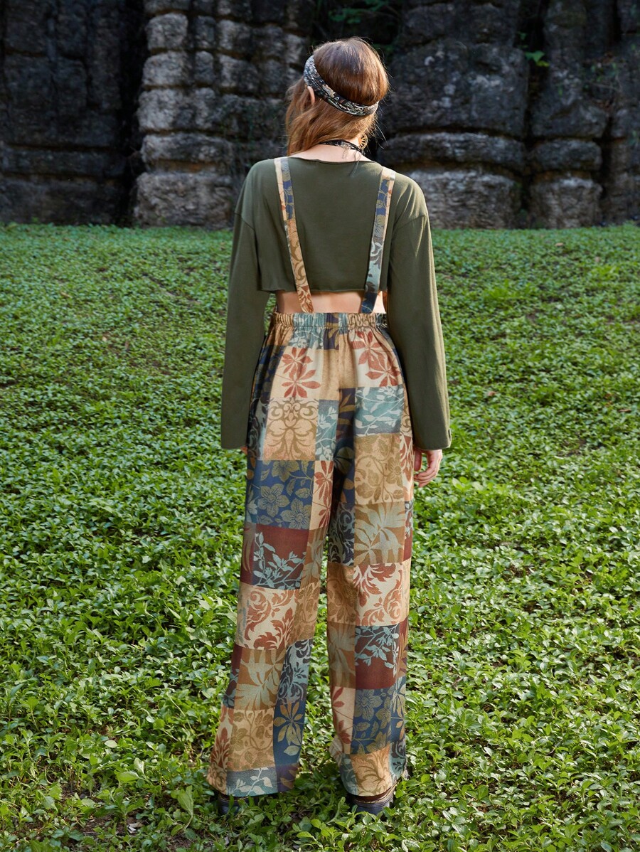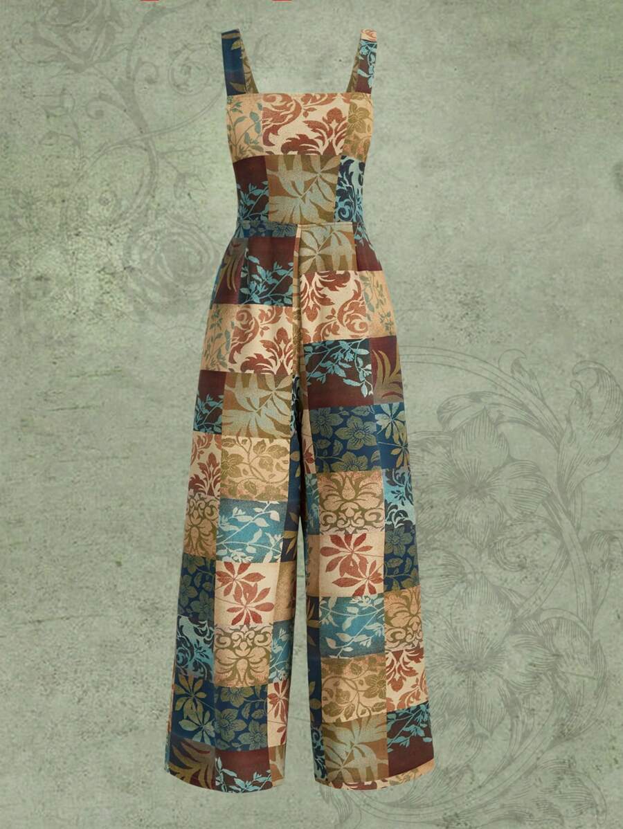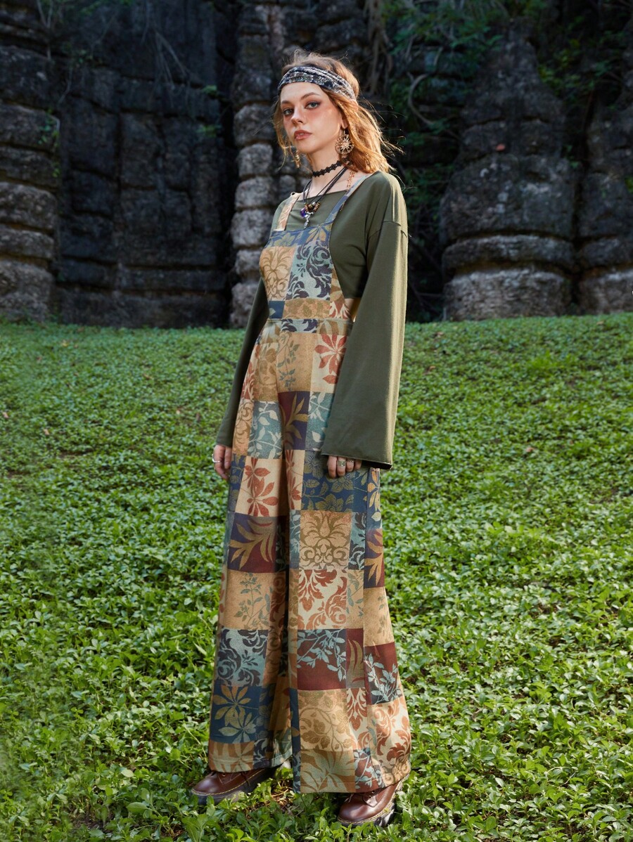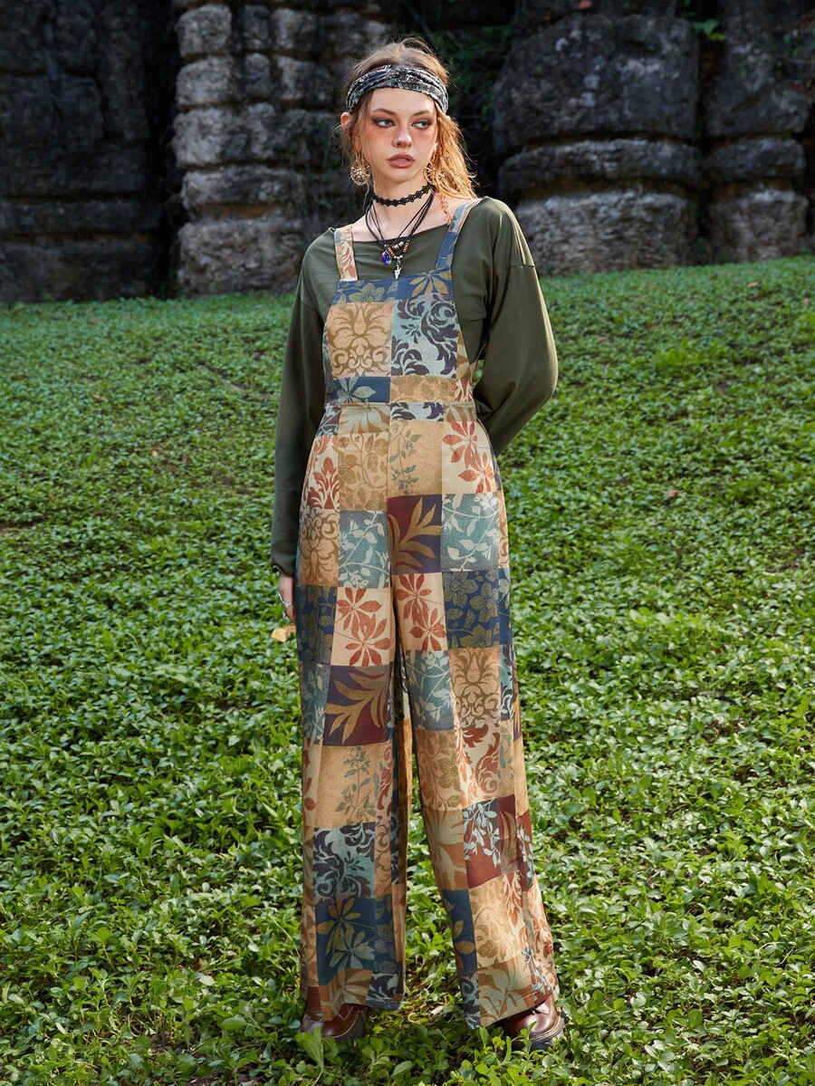 Hippie Overall Jumpsuit Patchwork Muster, breitem Beinschnitt,