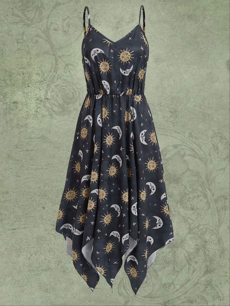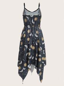 Hippie Cami Kleid mit Sonne & Mond Grafik Zipfelsaum,