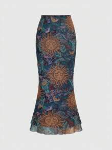 Hippie Mermaid Hem Rock für Damen mit Sonnenblumendruck
