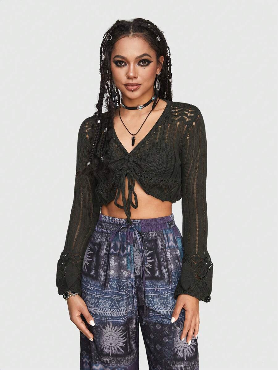 Hippie Damen Western Stil V-Ausschnitt Bindeträger kurzer Cut Out Pullover für den Urlaub
