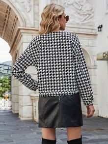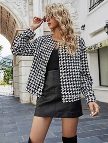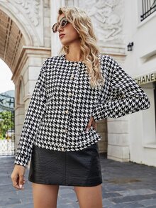 Jacke mit Hahnentritt Muster, sehr tief angesetzter Schulterpartie und Knöpfen vorn